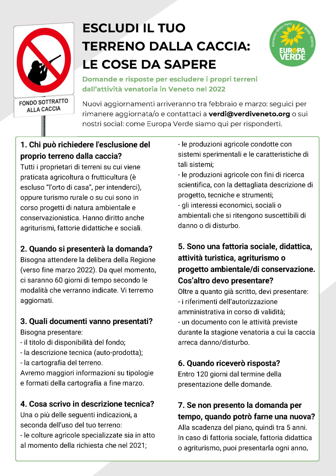 ATTENZIONE: entro 60 giorni dalla pubblicazione del nuovo Piano Faunistico Venatorio, sarà una delibera a definire quanto necessario alla presentazione della richiesta di sottrazione dei terreni dalla attività venatoria. VI TERREMO AGGIORNATI.
