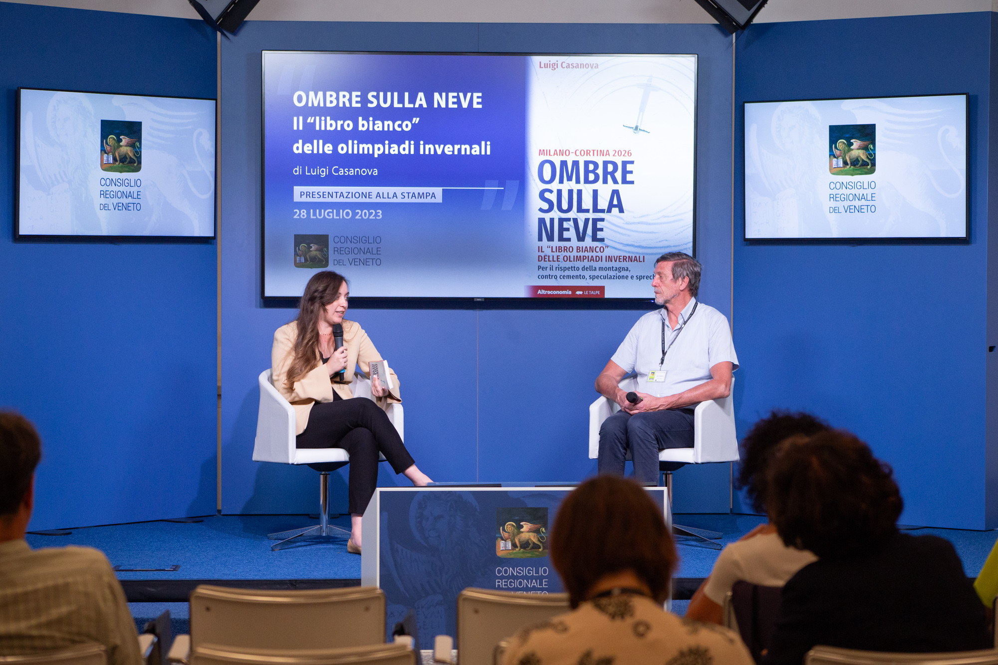 L’ho ribadito anche durante la presentazione del libro di Luigi Casanova: “Ombre sulla neve: Milano-Cortina 2026. Il libro bianco delle Olimpiadi invernali”, tenutasi il 10 ottobre 2023 a palazzo Ferro Fini a Venezia.