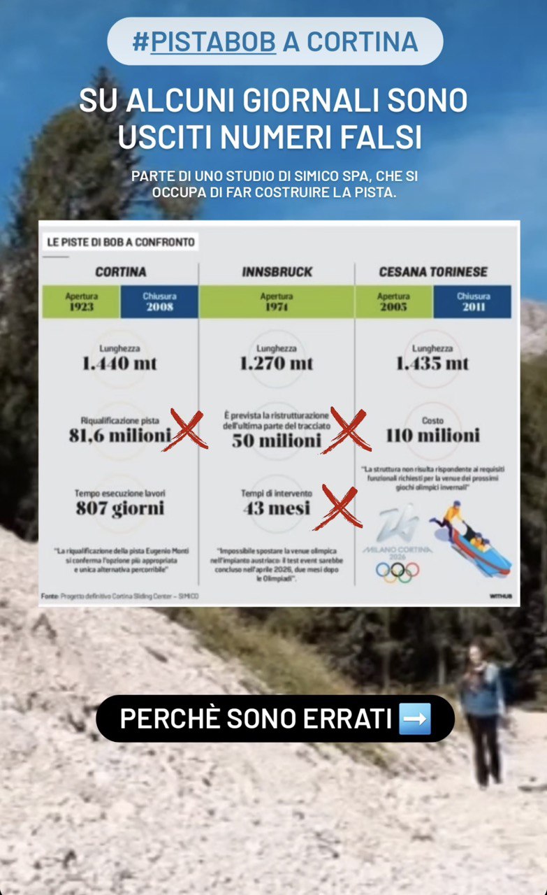 Eppure, su costi e tempistiche per l’adeguamento della pista da bob a Innsbruck basterebbero le dichiarazioni pubbliche rilasciate dal sindaco di Innsbruck e dal direttore di Olympia World, ente che gestisce la pista di bob di Igls in Austria, a smentire la narrazione a senso unico di SIMICO.