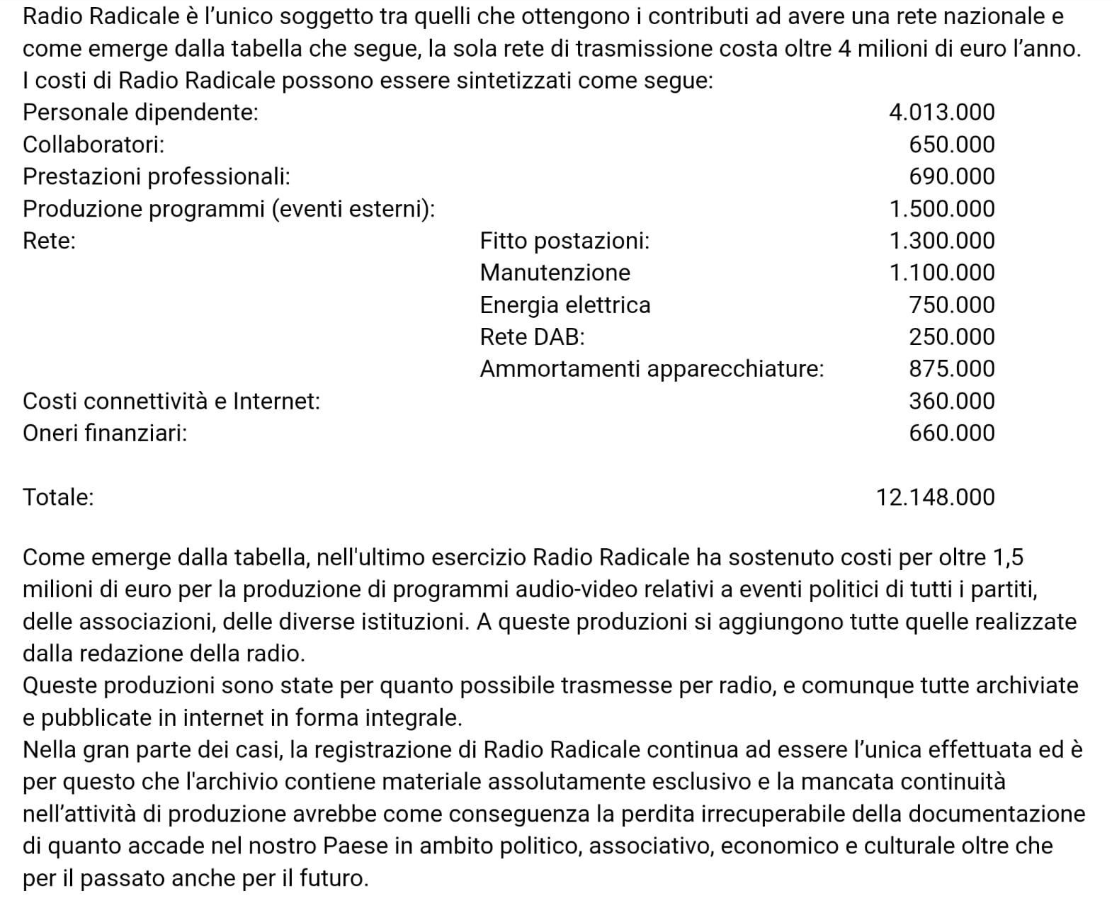 Una premessa con cui voglio introdurre un delicato tema riguardante Radio Radicale, uno strumento di informazione che si distinse e si distingue per una linea di politica editoriale che oggi tutti riconoscono imparziale, dando spazio ad un’informazione a 360° e il cui valore aggiunto è sicuramente la funzione di archivio storico, vista l’enorme quantità di contributi audio raccolti in questi anni, capaci di raccontare l’evoluzione storica e politica del nostro Paese.